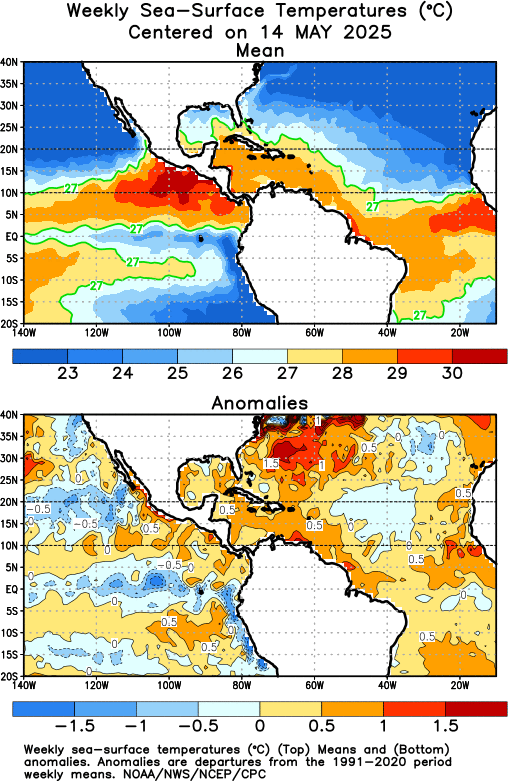 Gulf of Mexico and tropical Atlantic SSTs are 2–4 °F above average, with some shelf waters near Florida pushing 90 °F—fueling potential storm intensification Chron. - Season Peaks Amid Rising Activity